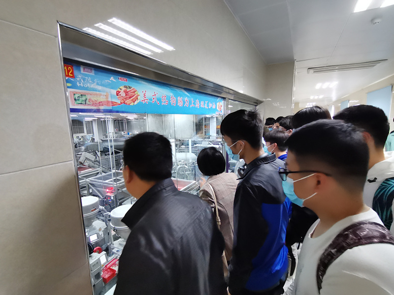 师生一行受到上海双汇设备安全副总经理张要丽、人力资源部部长杨朝阳的热情接待。在他们的带领下,师生参观了公司产业园区的三条食品生产线,对双汇食品的生产全过程有了直观的认识和了解。