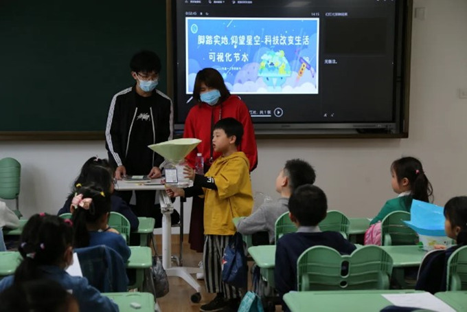 从地球水资源分布和节水策略,再到现有雨水采集办法和装置,社团成员为孩子们讲解了一系列节水知识。在他们绘声绘色的讲解之下,原本抽象的知识变得更加生动形象、易于理解。社团成员们将复杂的原理通过动漫形象表达,并通过生动有趣的互动环节吸引小学生们的兴趣、加深他们对知识的理解。这场活动不仅鼓励了孩子们积极思考,也培养了他们对科学知识的学习热情。