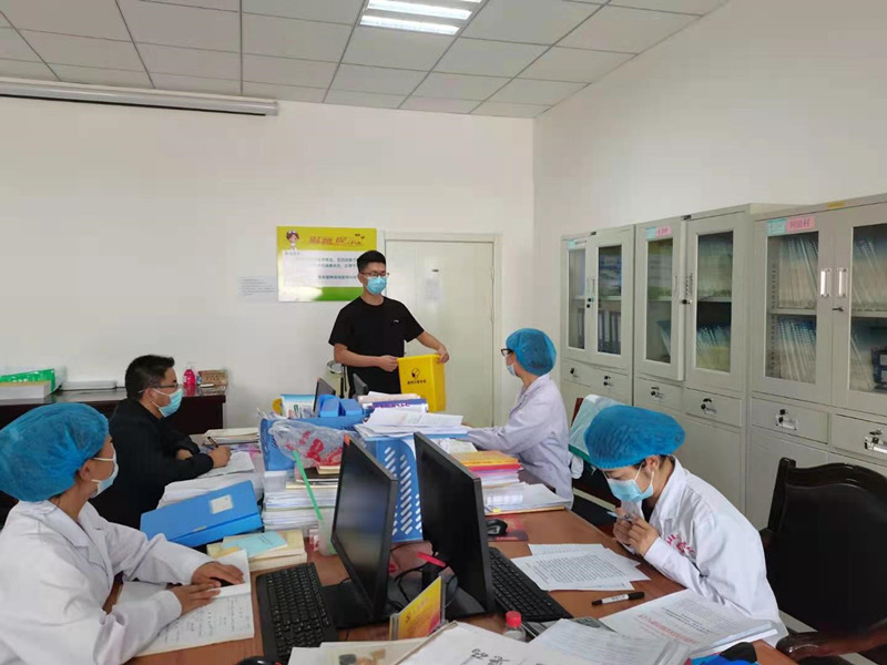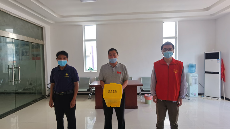 实践团队向乡镇医院医生宣讲“医疗口罩回收箱”