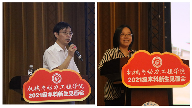 杨倩介绍了学院学生工作部门的主要职责和工作内容,分享了大学生活的经验和教训,鼓励新生在加强专业知识学习的同时,利用大学提供的广阔平台从各方面锻炼自己,实现综合素质和能力的全面提升。