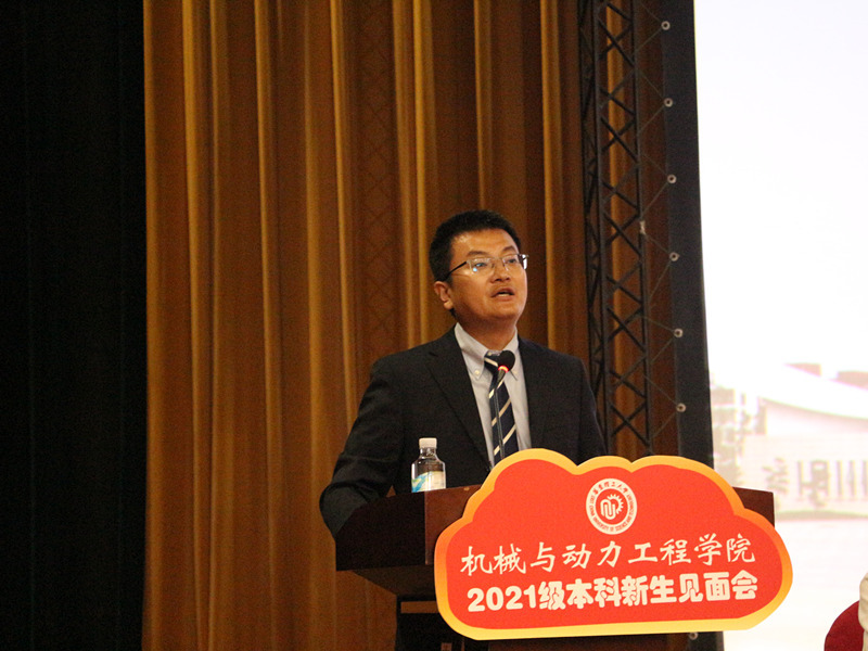 张显程致辞,他对新生加入华理机动学院大家庭表示热烈欢迎和衷心祝贺,并从学院办学历史、师资力量、学科建设、科学研究、人才培养等方面介绍了学院的整体情况。他鼓励同学们要怀揣梦想,追求卓越,做一个为了目标不懈努力奋斗的人;要敢于批评,善于思考,做一个有思想有能力的人;要牢记“勤奋求实,励志明德”的校训精神,做一个勤奋踏实、乐于助人的有德行的人;要全面认识自己,勇于改变世界,做一个对社会发展有贡献的人。