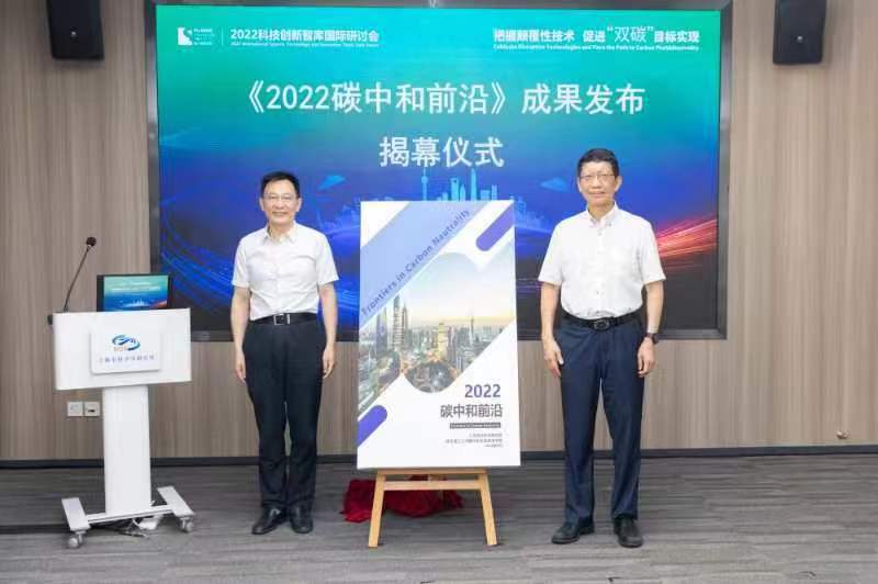 在8月5日举行的浦江创新论坛:2022科技创新智库国际研讨会上,我校科协主席涂善东院士与上海市科委谢文澜副主任、上海市科学学所所长石谦联合发布了由上海市科学学研究所与我校协作完成的《2022碳中和前沿》成果报告。