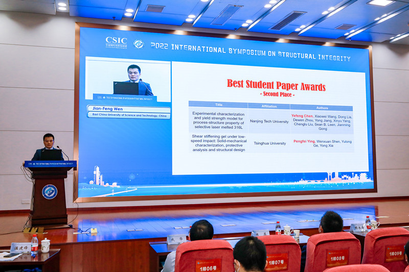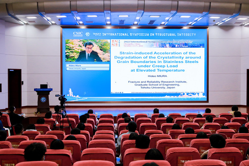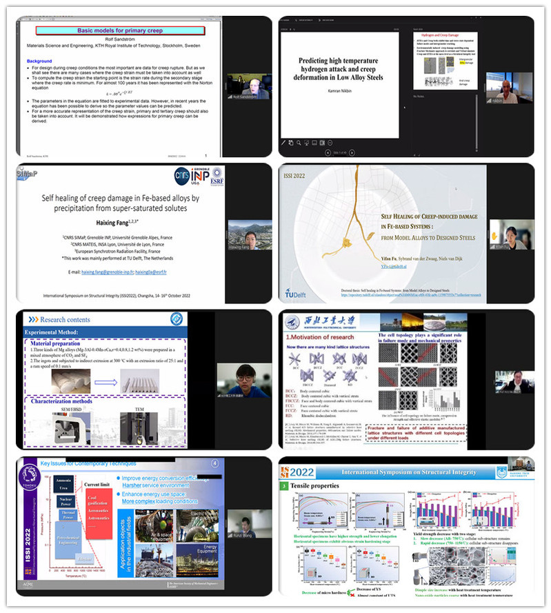 ISSI2022邀请了来自中国、新加坡、日本、英国、加拿大等国的本领域14位著名专家学者在5个串行会场做特邀报告,包括中国工程院院士、浙江大学杨卫教授作题为“Solids in nano-scales - extreme strength and elasticity”的报告,美国国家科学院和国家工程院院士、新加坡南洋理工大学Huajian Gao教授作题为“Engineer metals with internal interfaces for enhanced mechanical performance”的报告,法国国家技术科学院院士、香港城市大学吕坚教授作题为“Multiscale mechanics and structural integrity of additive manufactured materials”的报告,中国工程院院士、中国石油大学(北京)张来斌教授作题为“Status and challenge of oil and gas storage tank detection technology”的报告,中国工程院院士、长沙理工大学郑健龙教授作题为“Design theory and method of new durable asphalt pavement”的报告,日本东北大学Hideo Miura教授作题为“Strain-induced acceleration of the degradation of the crystallinity around grain boundaries in stainless steels under creep load at elevated temperature”的报告,澳大利亚工程院院士、南方科技大学叶林教授作题为“Design and characterisation of mechanical meta-materials for impact mitigation”的报告,电网输变电设备防灾减灾国家重点实验室主任陆佳政教授作题为“Research and application of anti-icing technology for power grid”的报告,日本原子能机构Yinsheng Li教授作题为“Structural integrity assessment of important components in nuclear power plants”的报告,NDT&E主编、英国纽卡斯尔大学Guiyun Tian教授作题为“RFID sensors-based inspection and monitoring structural integrity”的报告,NDT&E International主编、英国布里斯托大学Bruce Drinkwater 教授作题为“Recent advances in ultrasonic array imaging and its implications for structural integrity assessment”的报告,加拿大工程院院士、阿尔伯塔大学Hongbo Zeng院士作题为“Probing reversible noncovalent molecular interactions toward developing multifunctional soft materials and surfaces”的报告,湖南大学史才军教授作题为“Design of ultra high performance concrete for resilient infrastructures”的报告,河北工业大学书记、原校长韩旭教授作题为“Multi-source uncertainty quantification, propagation and optimization design for mechanical structures”的报告等。本次会议受到了国内外学者的广泛关注,大会报告直播在线点击量超过3万次。