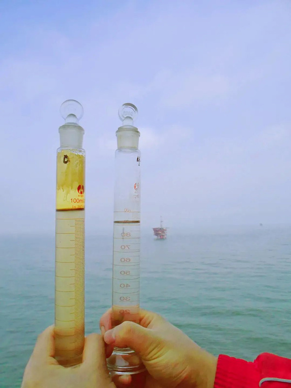 不仅如此,团队更是啃下了渤海某亿吨级大型稠油油田的生产污水处理这块“硬骨头”,在油品黏度高、密度大、综合含水率高、平台空间狭小的苛刻条件下,研发出了一套适合含有高悬浮物的稠油油田污水处理技术装备。