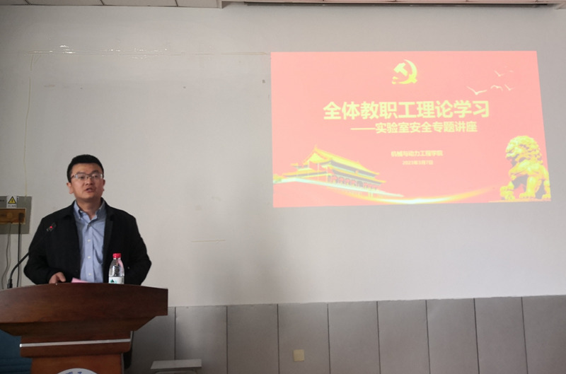 为深入贯彻落实党的二十大精神,坚定不移贯彻习近平总书记关于安全生产重要论述,加强实验室安全理论武装, 3月7日下午,beat365官方网站在徐汇校区实验10楼301多媒体室召开全院教职工大会暨实验室安全专题讲座。我校安全环保办公室主任、实验室与装备处副处长徐宏勇应邀作主题报告。机动学院党政领导班子以及全体教职工参会。大会由机动学院副院长易建军主持。