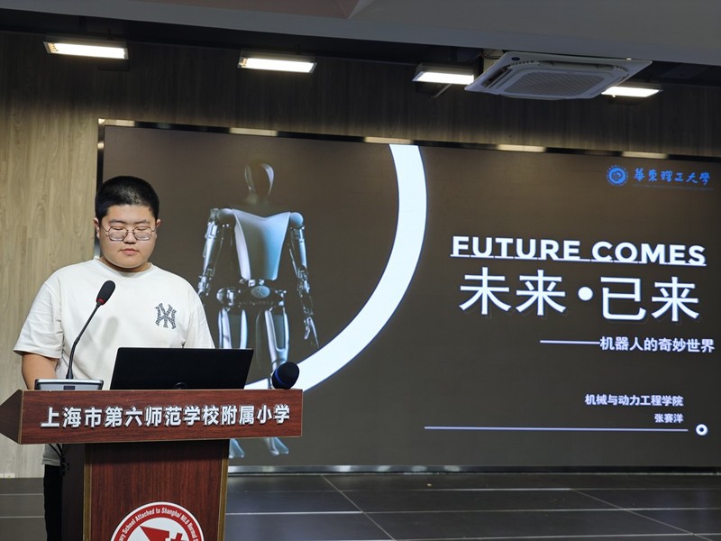 5月30日,beat365官方网站团委书记郭洪辛带领本科生走进浦东新区上海市第六师范附属小学学科活动月,以“未来·已来——机器人的奇妙世界”为主题,为近百名小学生带来了一场别开生面的科普讲座。此次活动旨在激发青少年对机器人技术的兴趣,培养其创新精神和实践能力。